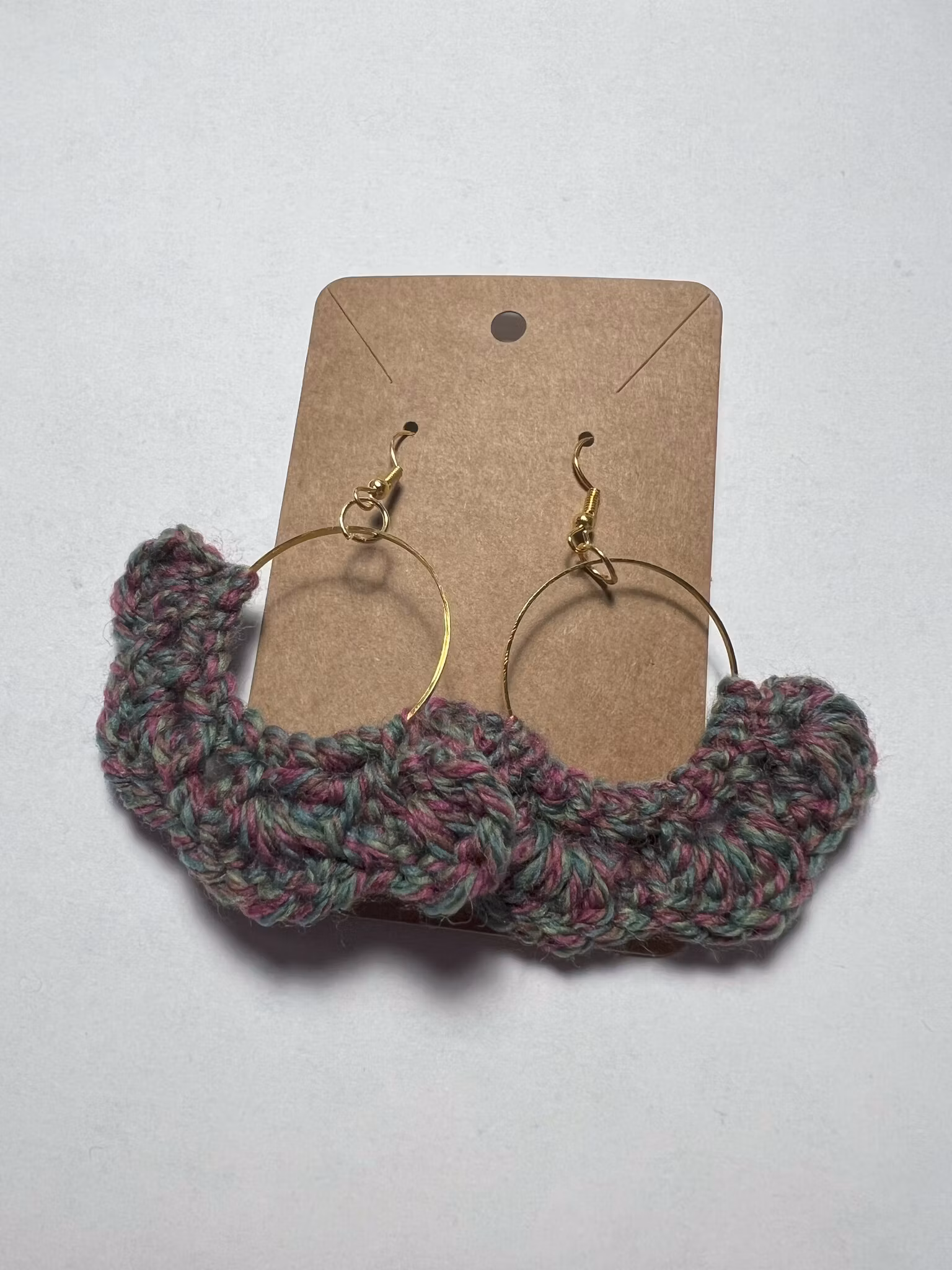 Örhängen som är skapade av restgarn, från andra projekt. Handvirkade med kärlek.
